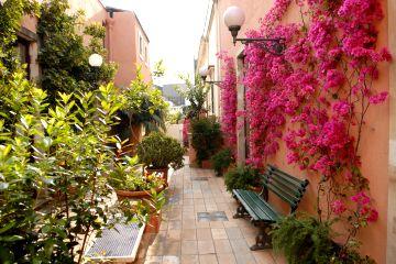 Le camere,molto ampie, danno tutte su balconi o su grandi terrazze interne elegantemente arredate e piene di piante e fiori. Una stanza con internet free è a disposizione dei clienti. Per lusso, comfort e servizi supera la categoria 4 stelle, anche se catalogato 3 stelle con relative tariffe.